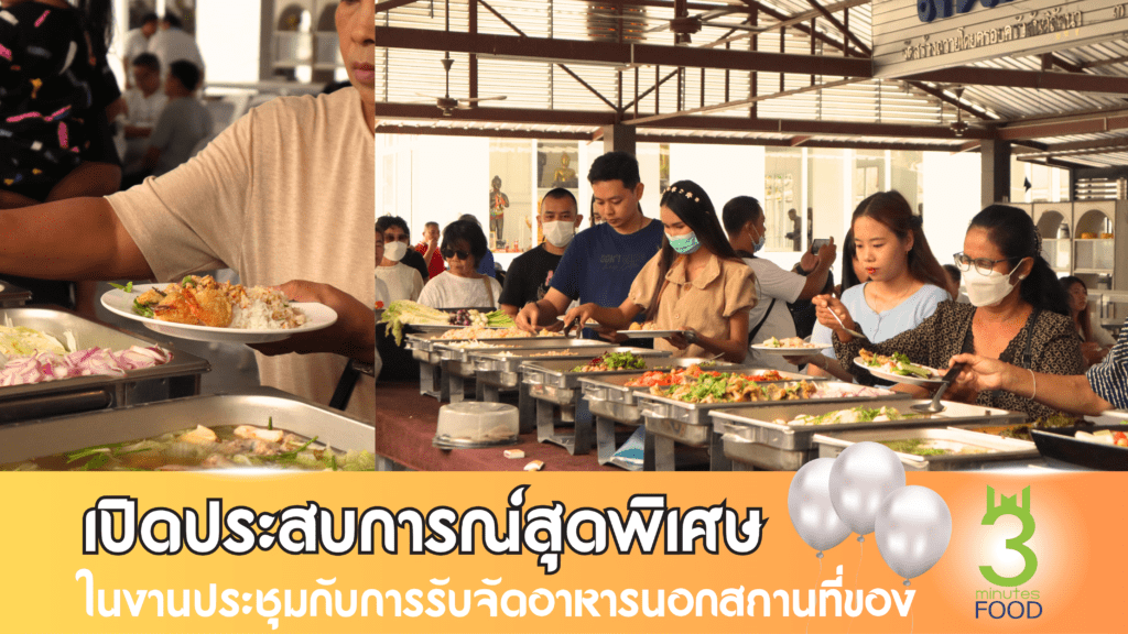 เชิญทุกท่านมาเปิดประสบการณ์สุดพิเศษกับการรับจัดอาหารนอกสถานที่ของ 3minutesfood เปิดประสบการณ์ที่ไม่ซ้ำใคร เพราะทีมเราได้สร้างประสบการณ์ใหม่ๆ ที่ไม่เหมือนใครให้กับลูกค้า ด้วยทีมงานที่มีคุณภาพและมีความเชี่ยวชาญในการบริการรับจัดอาหารนอกสถานที่ ไม่ว่าจะเป็นการเสิร์ฟเมนูอาหารหลากหลายชนิด การออกแบบโต๊ะอาหารให้ตรงกับธีมและความต้องการของลูกค้า โดยทีมงานมีความเชี่ยวชาญและประสบการณ์ในการรับจัดอาหารนอกสถานที่มากว่า 10 ปี มั่นใจได้เลยว่าลูกค้าทุกๆ ท่านจะได้รับประสบการณ์ที่ดีที่สุดในการประชุมหรืองานอีเว้นท์ทุกๆ ครั้งที่มีทีมเราอยู่ด้วยแน่นอน