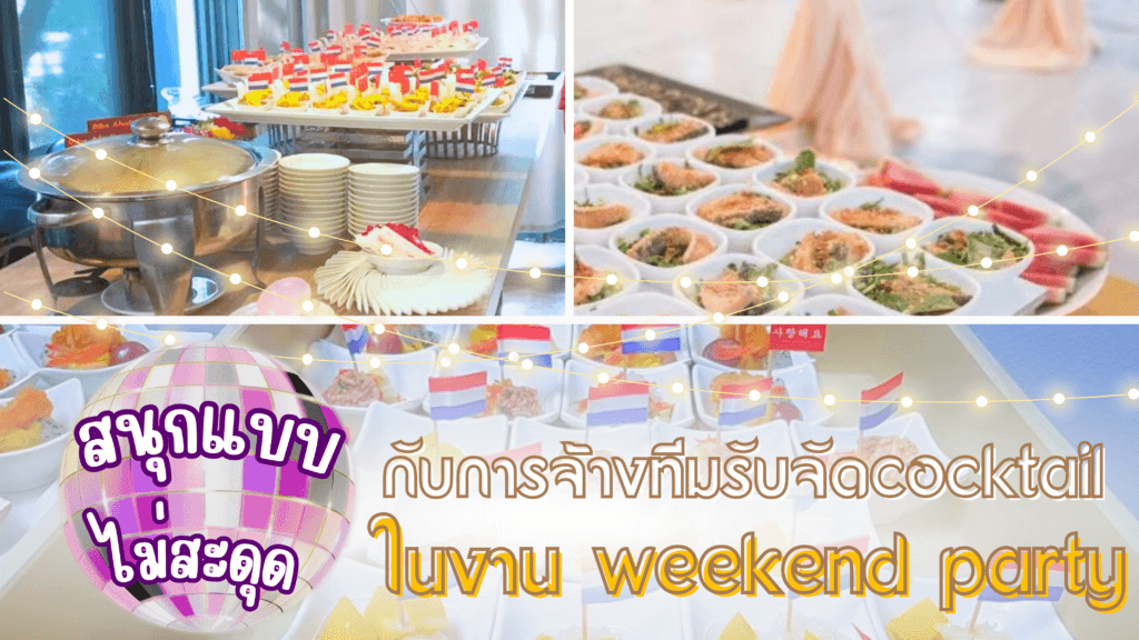 - ช่วยแบ่งเบาภาระหน้าที่ และการจัดเตรียมงานทุกๆ ขั้นตอนของเจ้าภาพ เพราะการเตรียมจัดงานในช่วงสุดสัปดาห์มักจะยากเสมอตั้งเเต่ การหาสถานที่จัดงาน ชุดเครื่องเสียง เมนูอาหาร และเครื่องดื่ม ซึ่งอาจเป็นงานที่น่าหนักใจ เนื่องจากมีความรับผิดชอบหลายอย่างที่ต้องจัดการ การตัดสินใจจ้างทีมรับจัดงานเลี้ยง รับจัดcocktail นอกสถานที่ นับว่าเป็นไอเดียที่ดีและมอบให้ผู้เชี่ยวชาญทางด้านการจัดงานได้สร้างประสบการณ์ในวันหยุดสุดสัปดาห์แสนสนุก ไร้กังวลให้กับชาวเราจะดีกว่า
