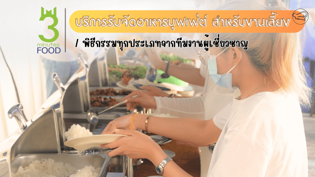 3minutesfood ผู้เชี่ยวชาญด้านการให้บริการรับจัดอาหารบุฟเฟ่ต์ที่มีความหลากหลายไม่ว่าจะเป็นเมนูอาหารไทย เมนูอาหารญี่ปุ่น เมนูอาหารจีน เมนูอาหารสุขภาพ และอื่นๆ นอกจากนี้ยังมีบริการจัดส่งอาหารที่สะดวกสบายและมีมาตราการการรักษาปลอดภัยเรื่องการขนส่งอาหารให้กับลูกค้า สิ่งเหล่านี้จะช่วยทำให้งานเลี้ยงของคุณเป็นเรื่องง่ายๆ และสะดวกสบายมากยิ่งขึ้น